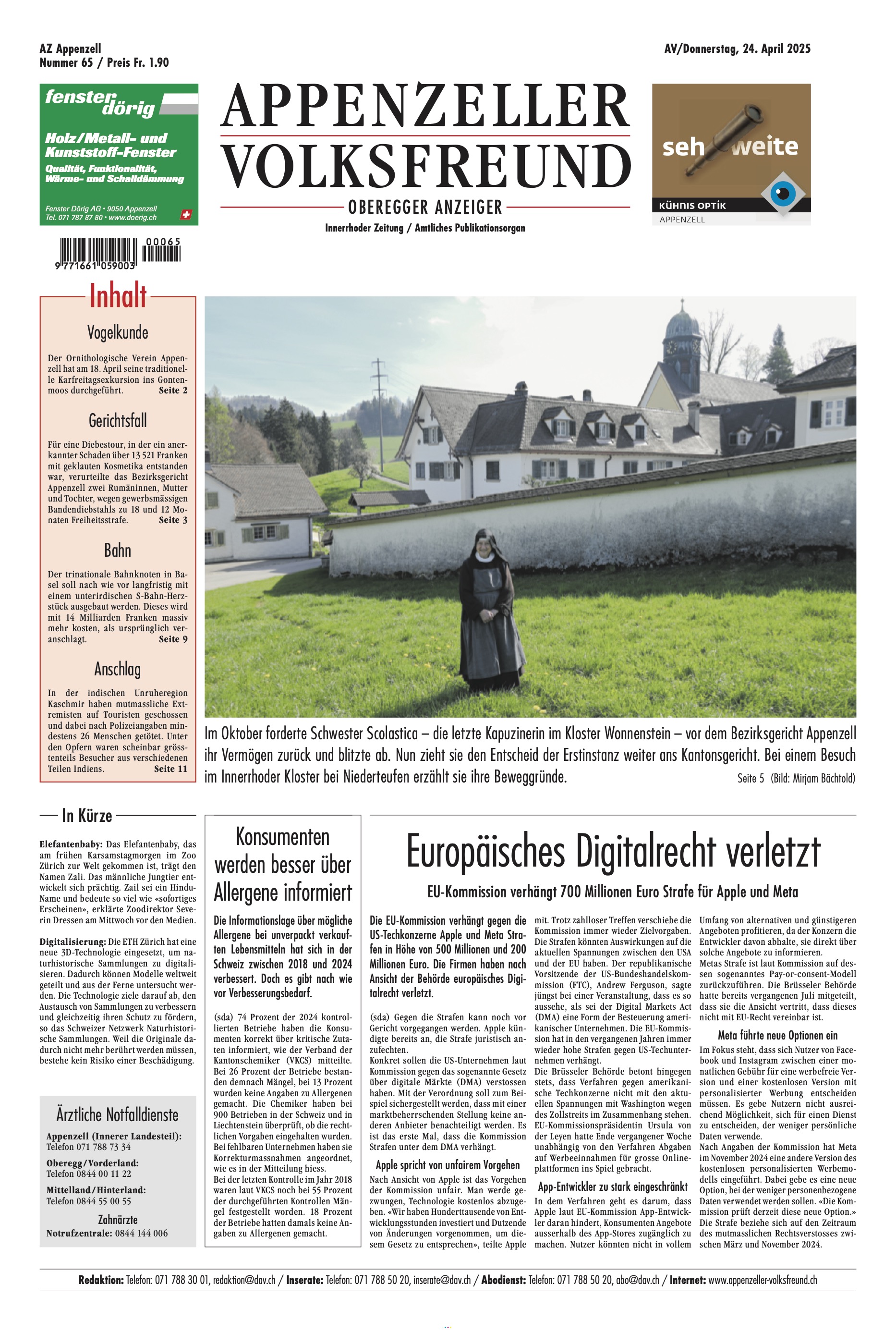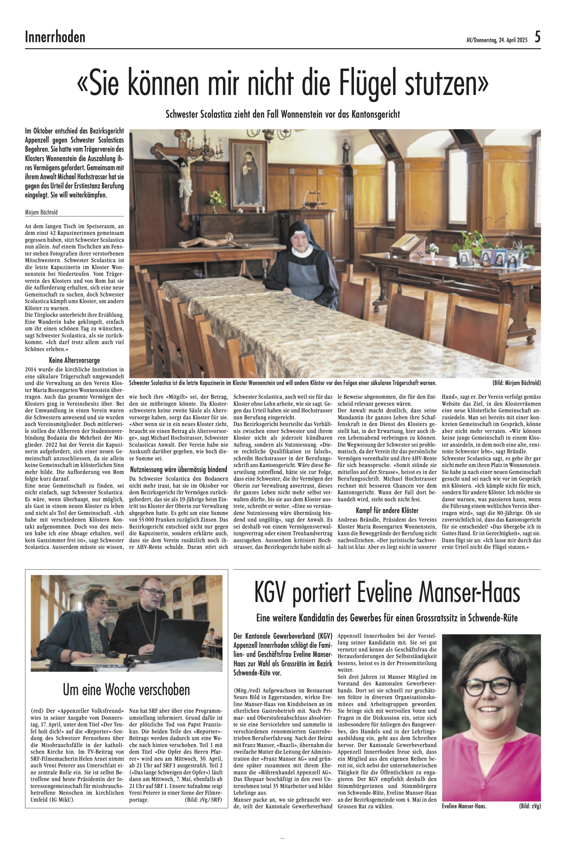 Appenzeller Volksfreund - 24. April 2025 (Mirjam Bächtold)